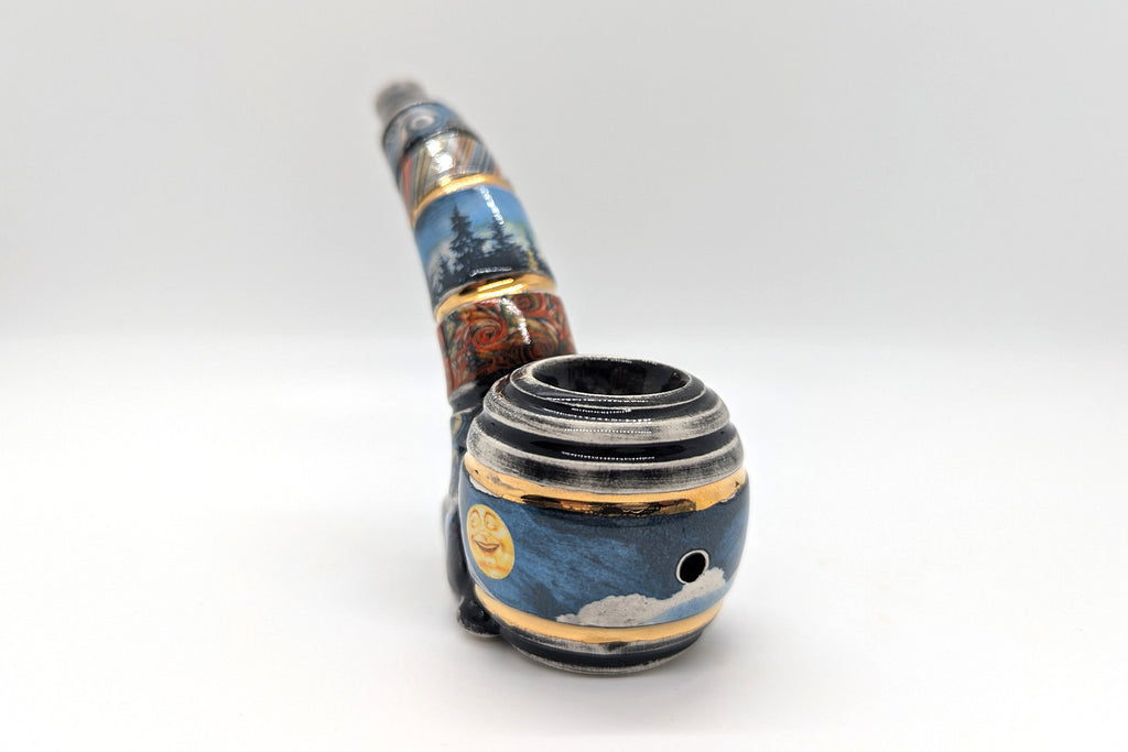 Our pipes are individually made by hand and are unique and one of a kind. They are created with a worn esthetic to evoke a nostalgic and vintage feeling. We believe perfect is boring and these purposefully blemished designs add character and individuality to each pipe. Our ceramic pipes are made to stand the test of time and enhance your smoking pleasure.